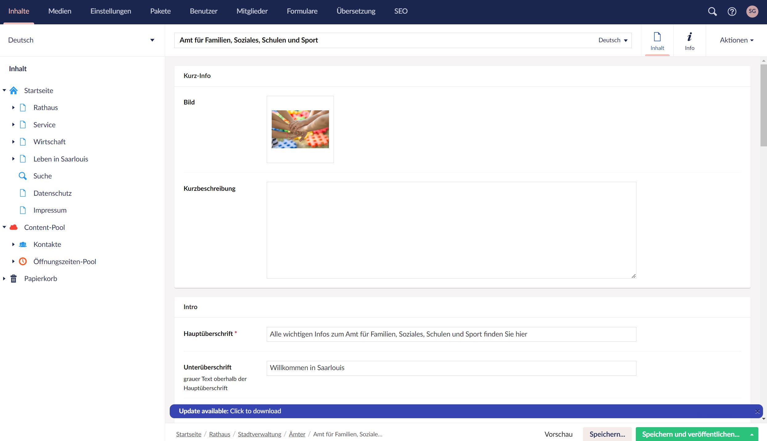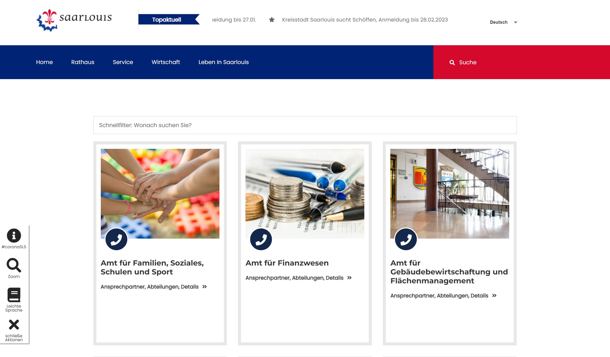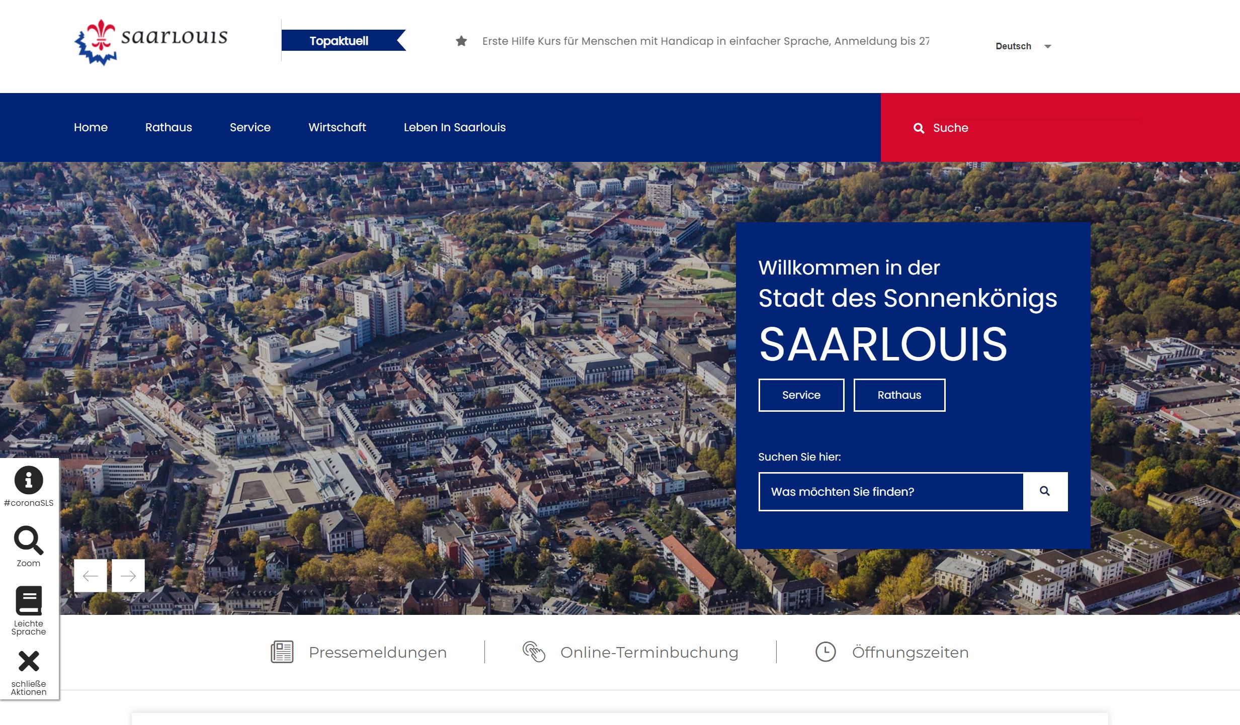 Komplexe Stadt-Webseite mit intelligenter Suche durch umfangreiche Datenbasis